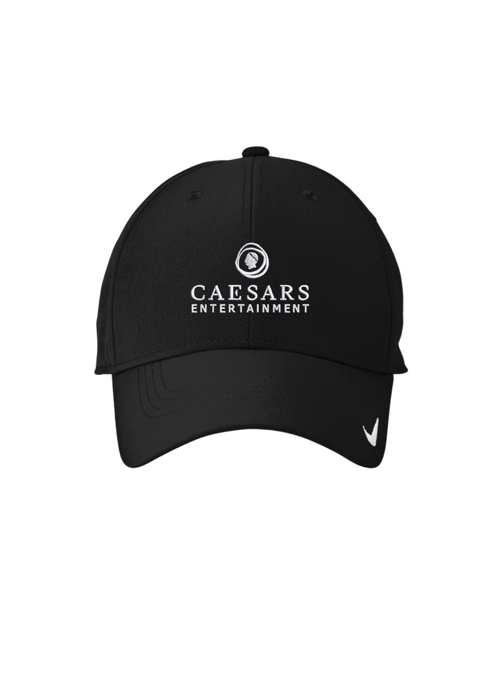 sku: CET-228Black: Nike Dri-FIT Legacy Cap with white Caesars Entertainment logo embroidered white thread front/center all hats.
