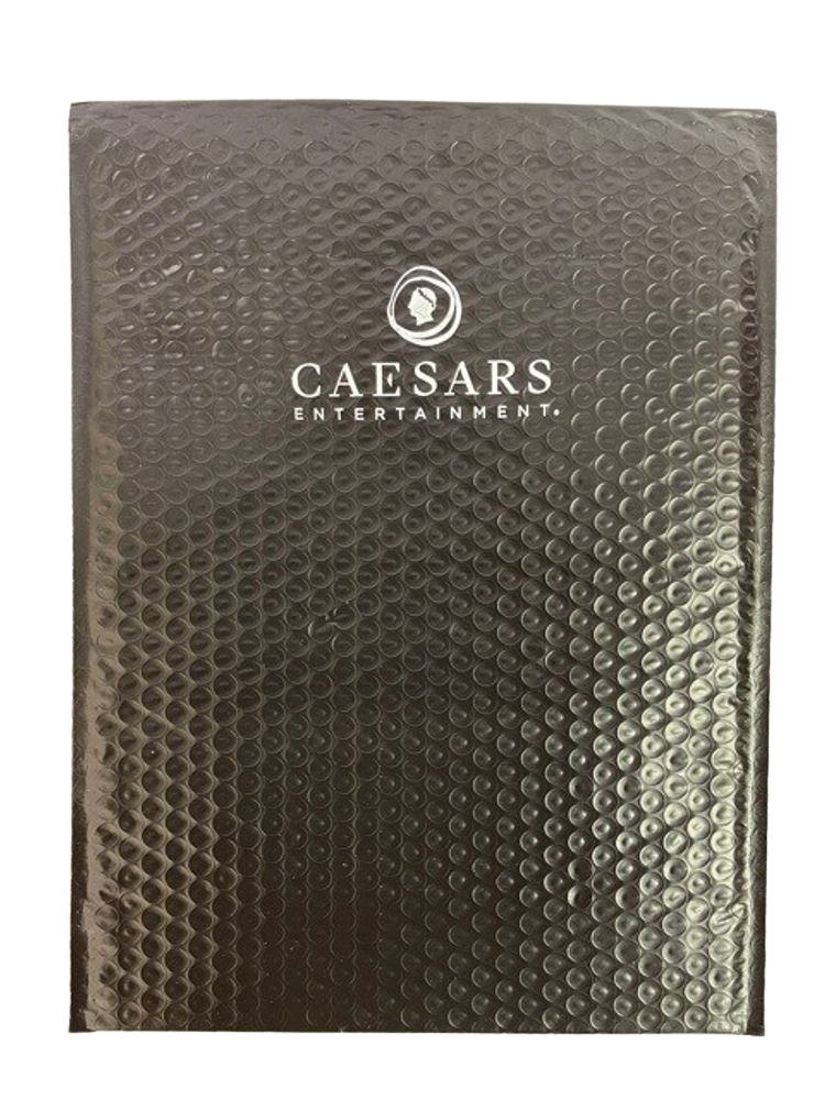 Bubble mailer with the Caesars Entertainment logo printed on them. Bubble Mailer measures 9.5” wide x 14” tall. Perfect to use for packaging small gift items!