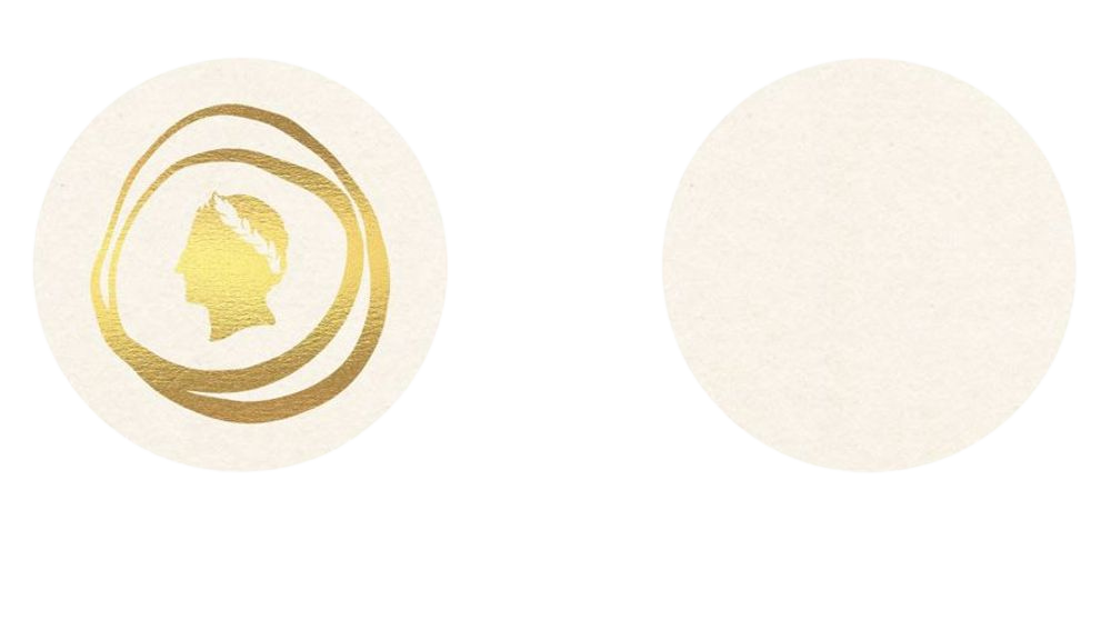 sku: CET-166White coaster with metallic gold Caesars head and rings printed 1 side